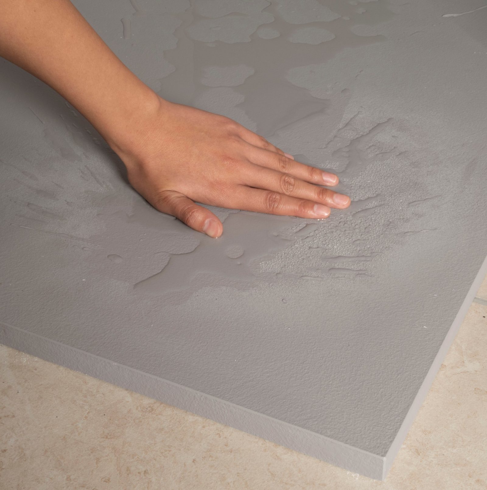 Tip: wil je snel de grip testen? Maak je hand licht nat en leg ze op het oppervlak. Voel je lichte weerstand, dan zullen je voeten doorgaans dezelfde stabiliteit ervaren.